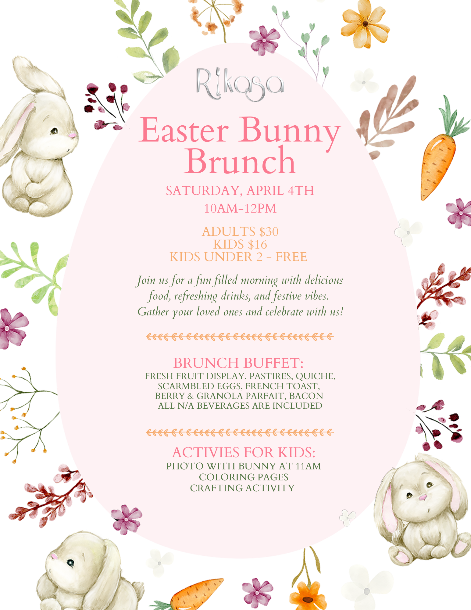 Spring is in the air, and the Easter Bunny is hopping into 🐰🌸 Rikasa’s Brunch with the Easter Bunny! 🌸🐰