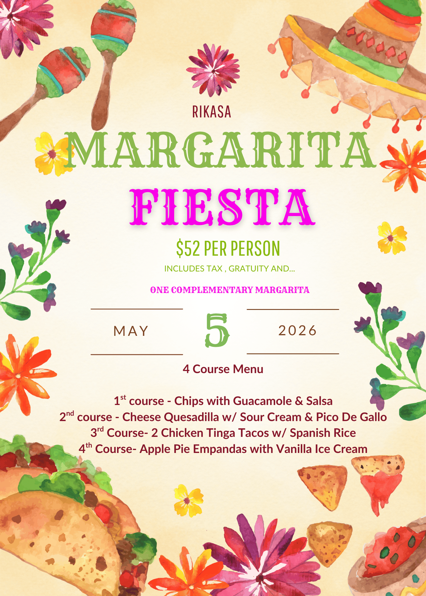 Join us for our 3rd Annual Margarita Fiesta at Rikasa — a night made for sipping, celebrating, and soaking up all the fiesta vibes 🍹✨